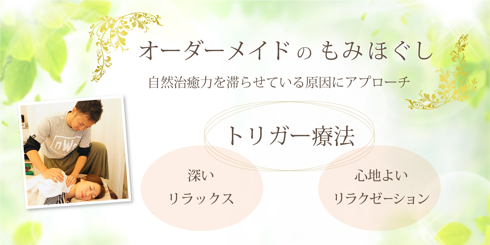 主にトリガーポイント(自然治癒力に滞らせている原因にアプローチ)を取り入れて、深い筋肉のこりをしっかりほぐして、気持ちいいストレッチで元気が続くカラダになるようにお手伝い致します。ストレスに強くなるカラダを手に入れて、充実した日々が送れるようサポートいたします。首こり・肩こりが続いている方、頭痛や目の疲れ、腰痛や足のむくみなどカラダの重だるさを感じてる方などに。他にはない癒しをお試しください^-^